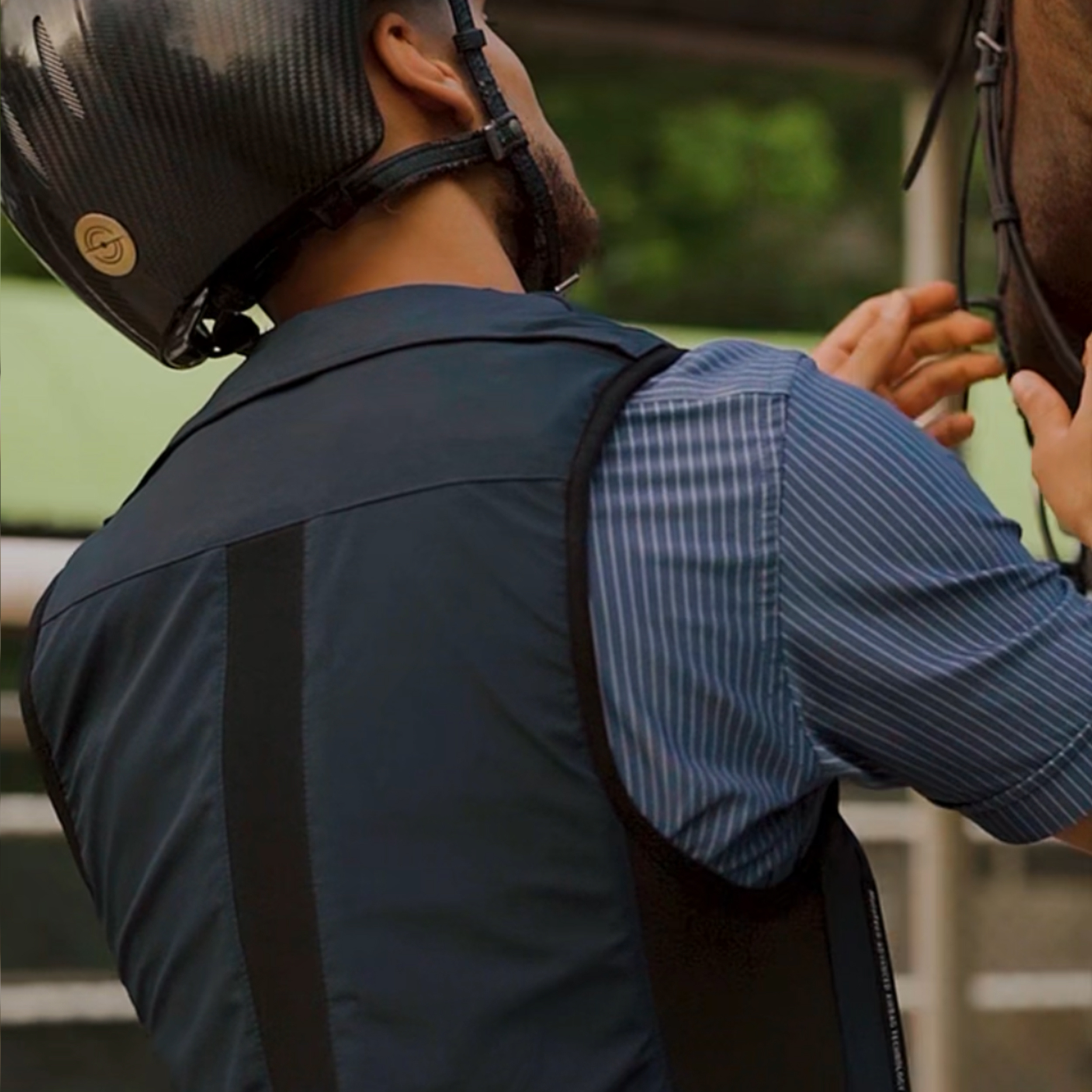 با سرعت فعالسازی تنها ۱۰۰ میلیثانیه، جلیقه EQUE Pro یکی از سریعترین سیستم های ایربگ سوارکاری در دنیاست. این جلیقه با طراحی نوآورانه دارای ایربگ گردنی تقویت شده برای محافظت مضاعف از مهرههای گردن، ضربه گیر اضافه پشتی با تکنولوژی لاکپشت، دو سیستم جانبی رگلاژ عرضی برای تنظیم دقیق سایز و پارچه بسیار مقاوم و در عین حال سبک است، ترکیبی که در هیچ برند خارجی یافت نمیشود.