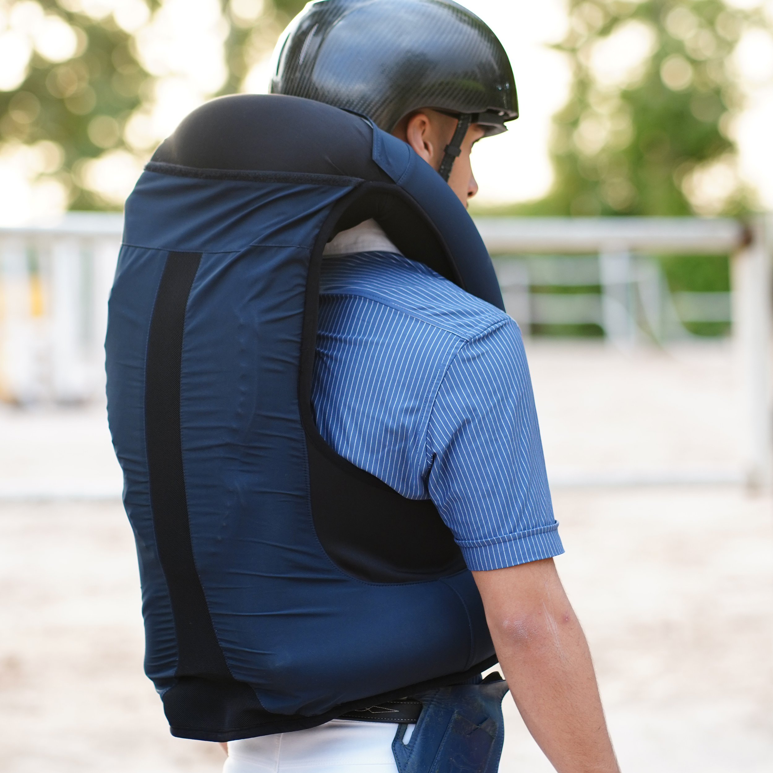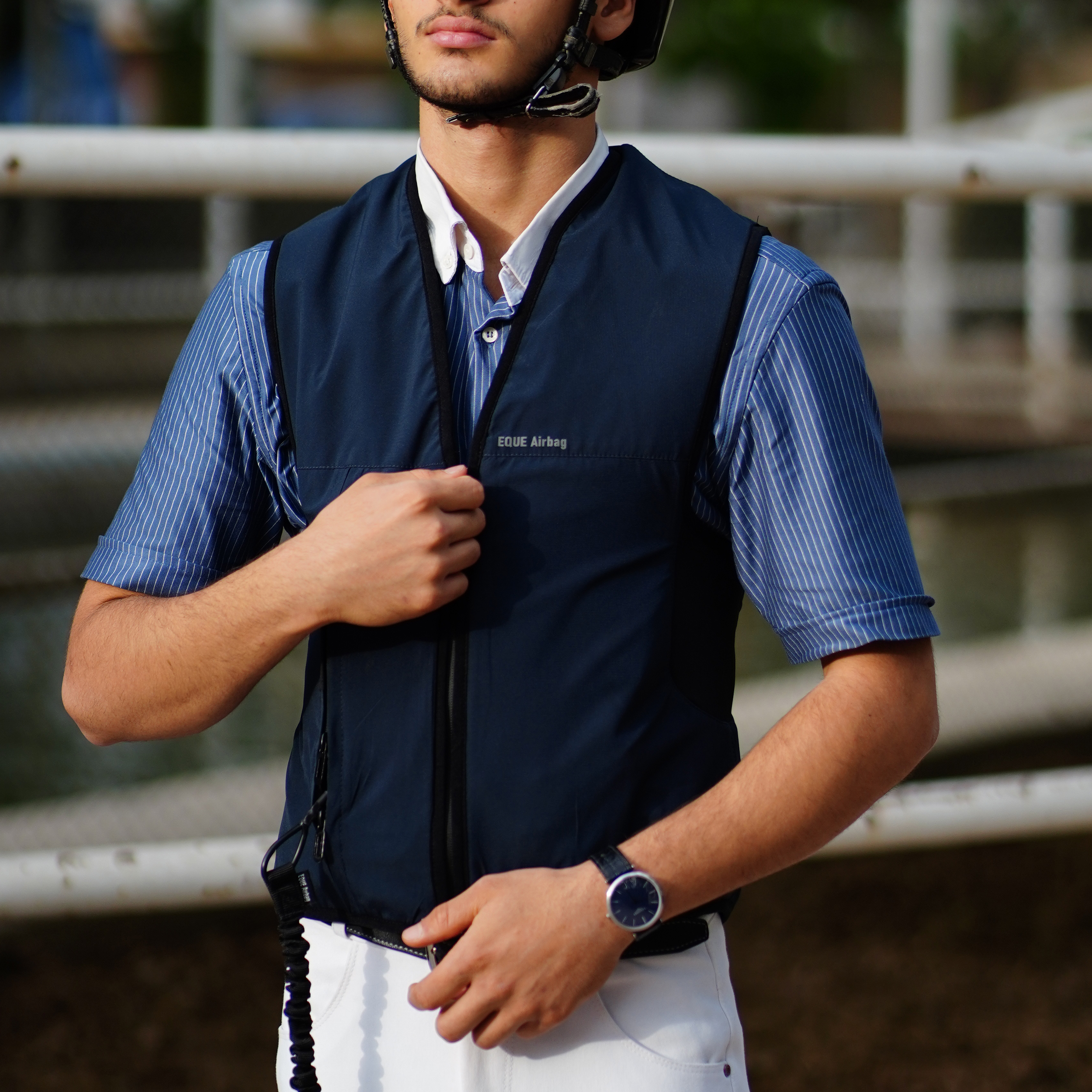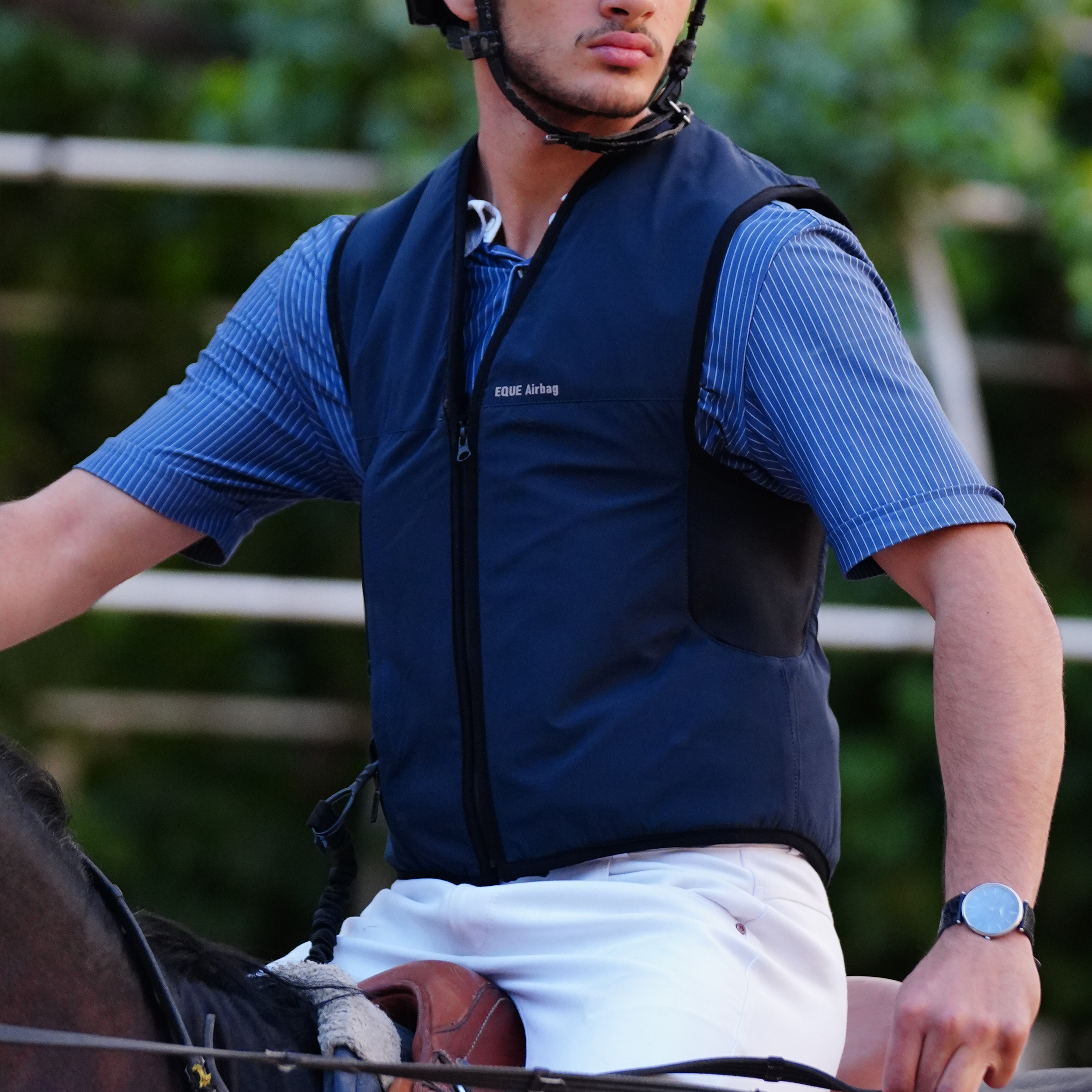 جلیقه اکویی ایربگ با استفاده از یک کابل اتصال (lanyard) به زین متصل میشود. در صورت جدا شدن ناگهانی سوارکار از زین، مکانیزم فعالسازی وارد عمل شده و ایربگ در کسری از ثانیه باز شده تا از بخش های حساس بدن محافظت نماید. پس از فعال شدن ایربگ، با تعویض کپسول گاز، جلیقه آماده استفاده مجدد خواهد بود.