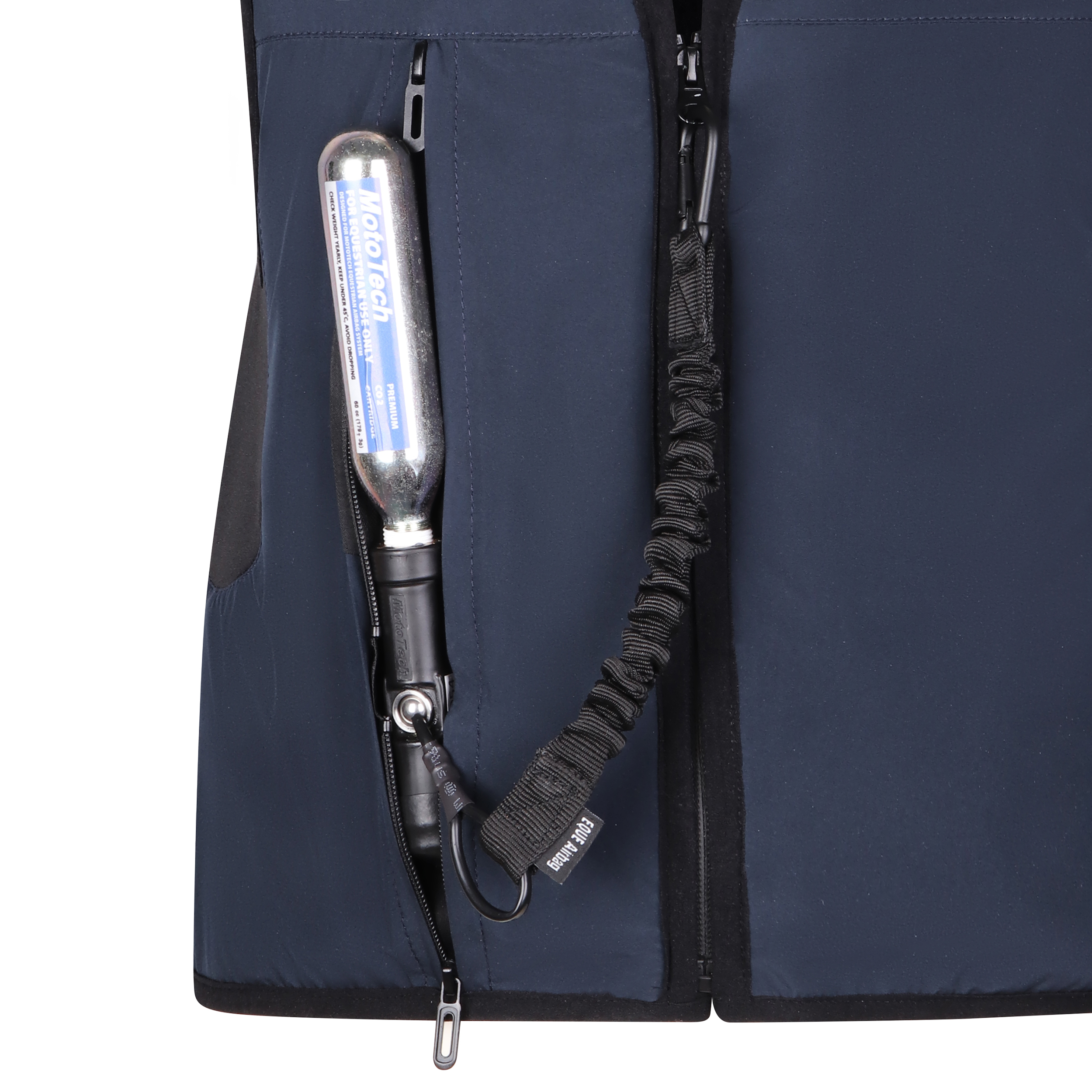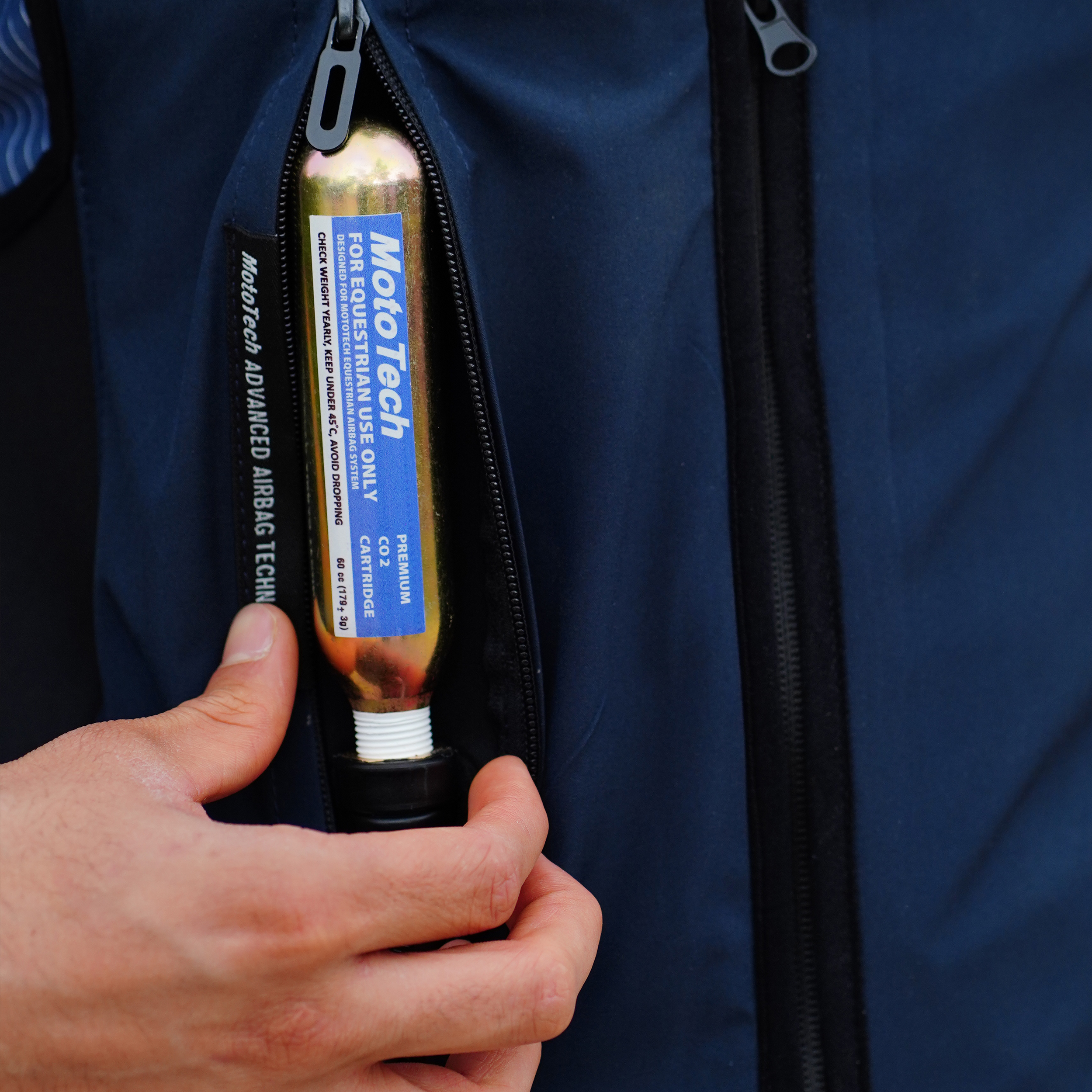 - در صورت جدا شدن سوارکار از زین (برای مثال هنگام سقوط)، این طناب کشیده شده و سیستم کپسول گاز CO₂ فعال میشود.