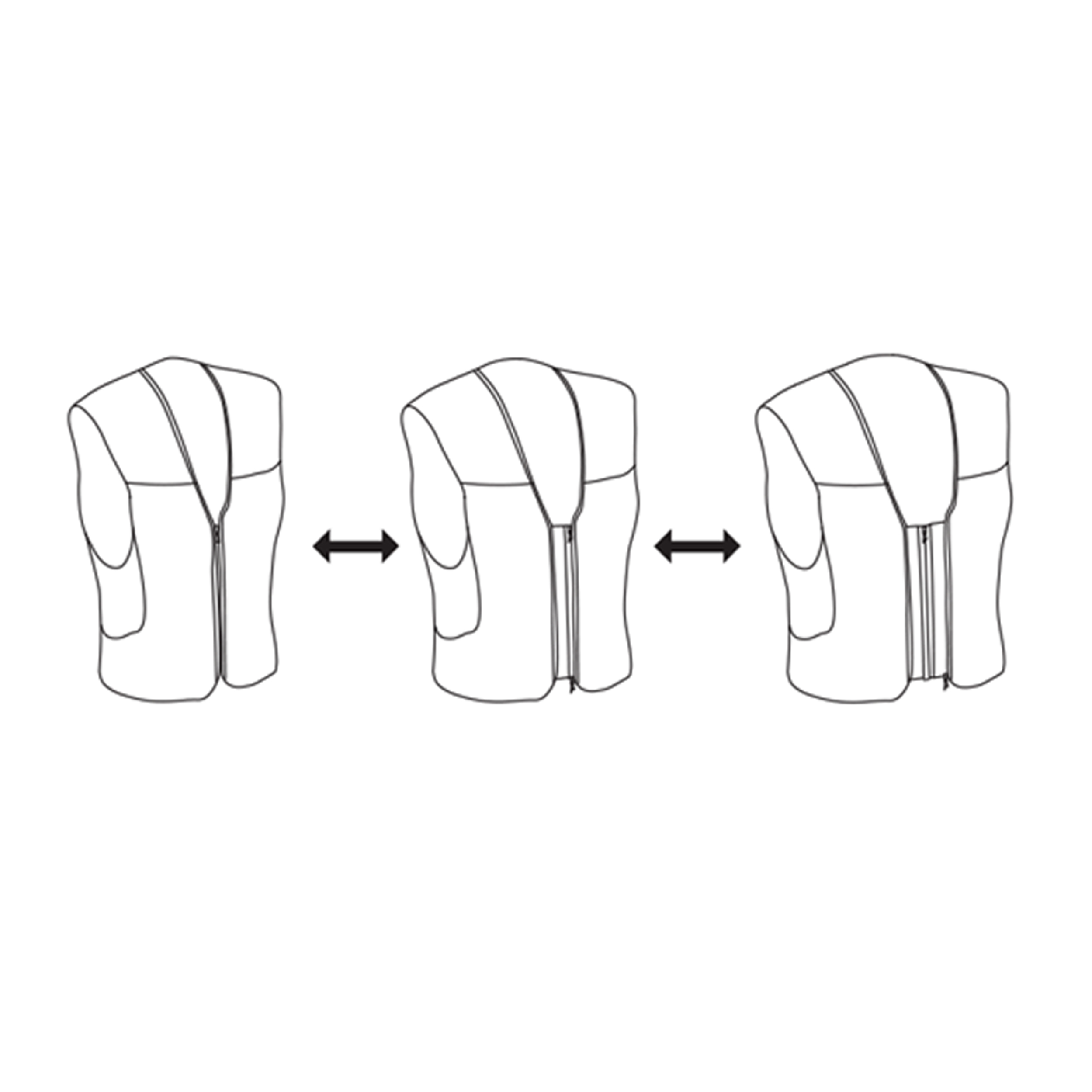 لازم به ذکر است به علت افزایش حجم، ایربگ باید بهعنوان بیرونیترین لایه لباس پوشیده شود. با توجه به وجود دو رگلاژ جانبی عرضی (دو نوار زیپی جهت تنظیم سایز)، امکان تغییر اندازه عرضی جلیقه فراهم شده است. به این معنا که در فصول گرم میتوانید زیپهای اصلی جلیقه را بسته و آن را بهصورت فیت بر تن کنید، و در فصول سرد با اسنفاده از رگلاژ های جانبی، جلیقه بهصورت محسوس آزادتر شده و بهراحتی روی لباس گرم یا کاپشن سوارکاری قابل استفاده خواهد بود. علاوه بر این، این مزیت باعث شده ایربگ با هر فرم بدنی سازگار باشد و استفادهکننده در صورت افزایش یا کاهش وزن نیز بتواند بدون نیاز به تعویض، از همان جلیقه استفاده کند.
